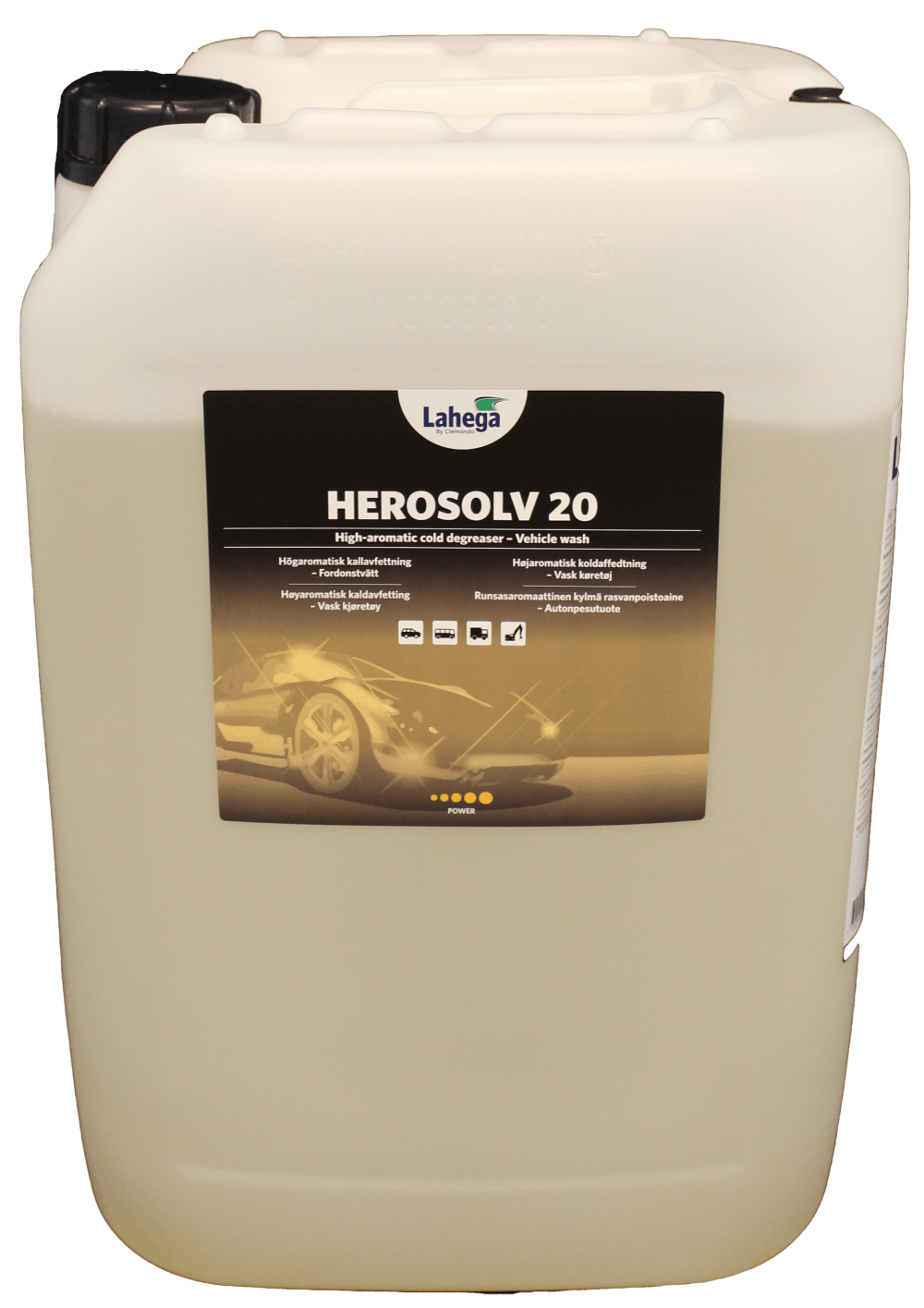 Lahega Herosolv 20 er ett ekstremt effektiv og kraftig kaldavfettingsmiddel som brukes konsentrert på bilen.
