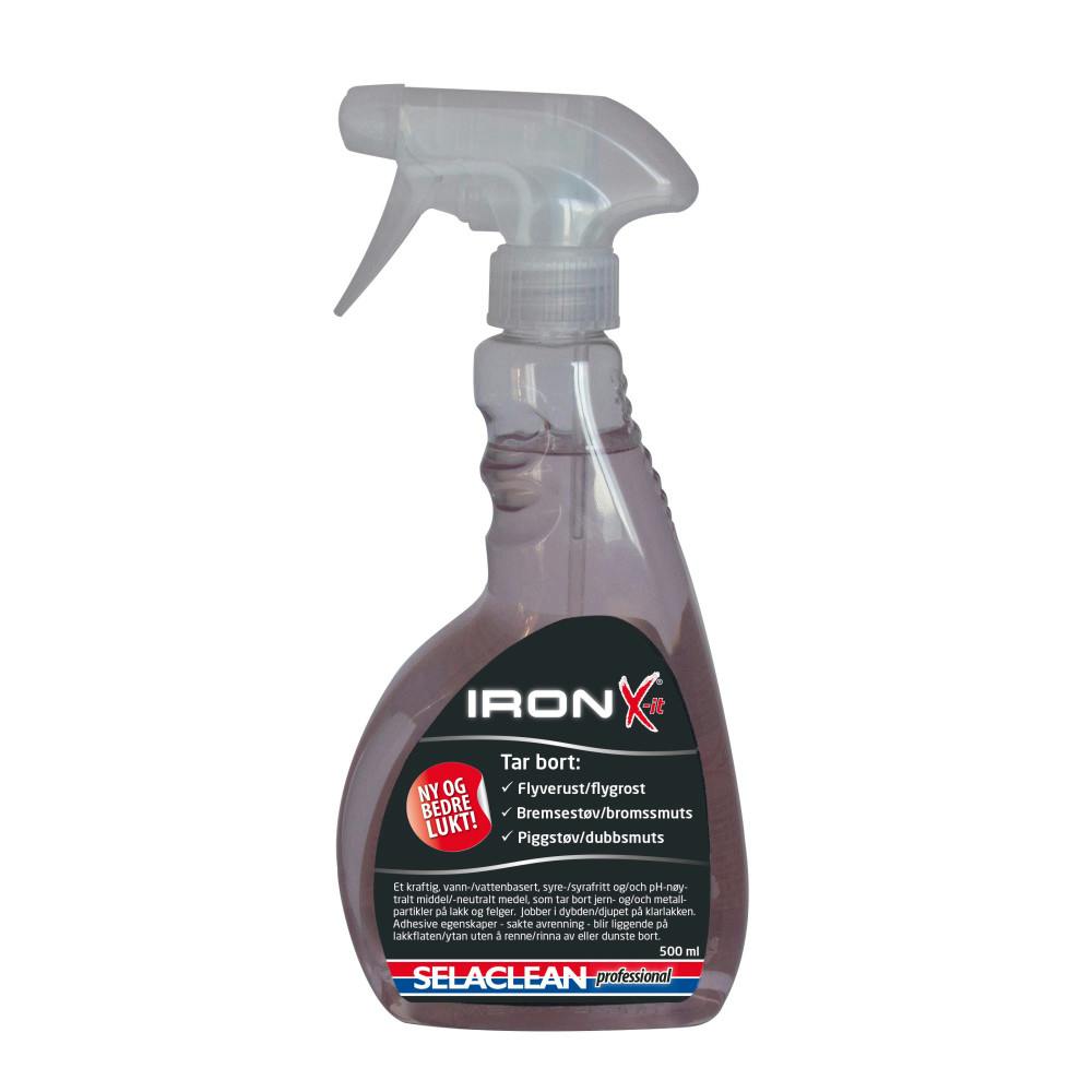 Selaclean Iron X-it er utviklet for effektiv fjerning av flyverust, piggstøv og andre metallpartikler som du ofte kjenner som små nupper på nedre del av bilen.
