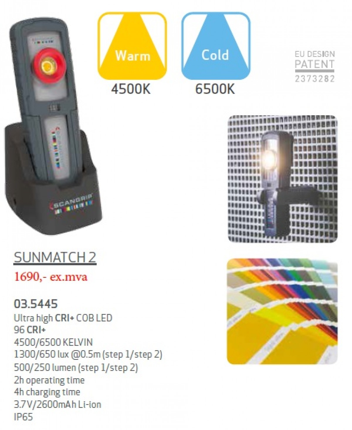 Scangrip - Sunmatch 2 skrur seg automatisk av etter 3 minutter kontinuerlig bruk for å unngå overoppheting.