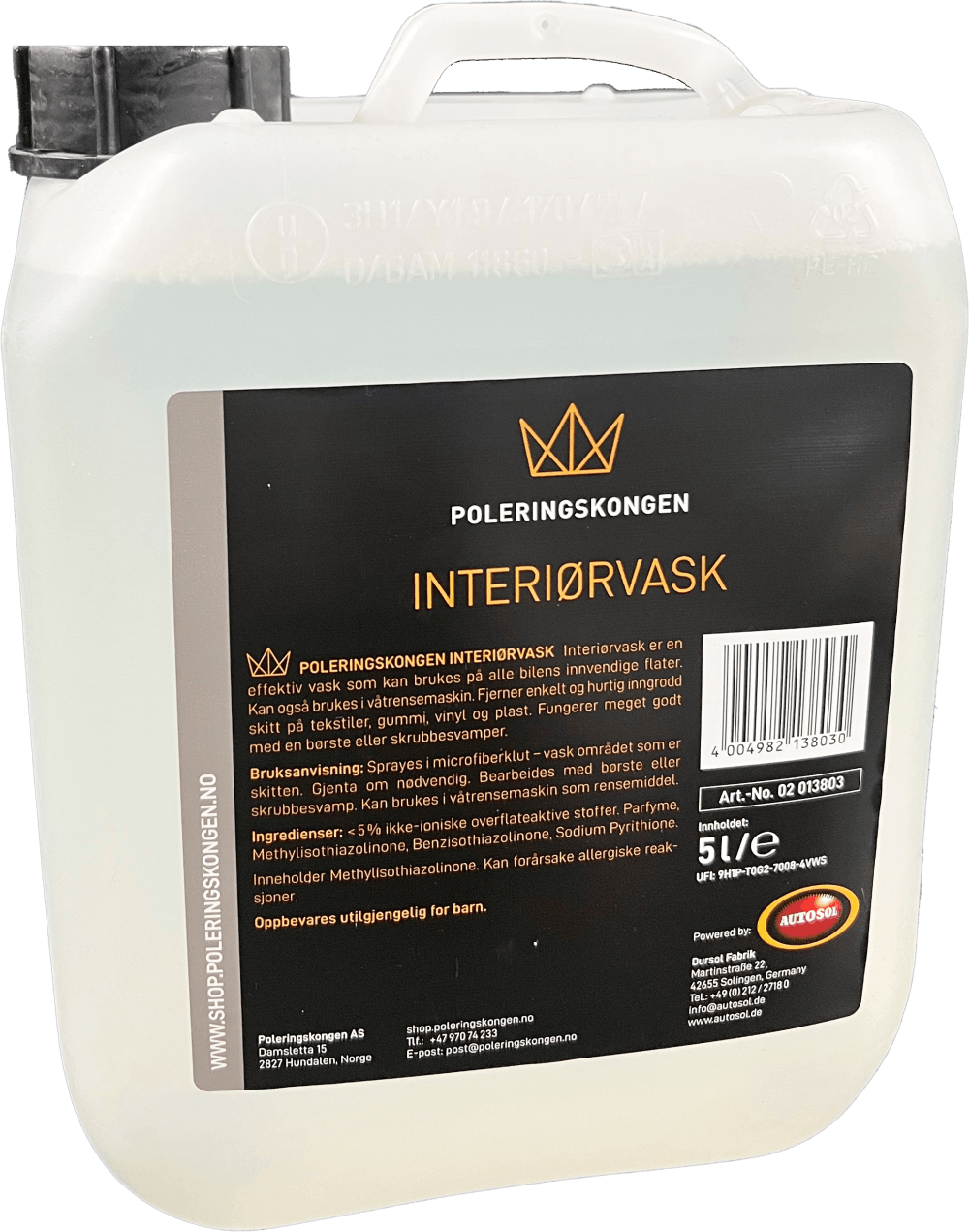 Poleringskongen Interiørvask er produsert av Dursol Nordic (Autosol) for Poleringskongen.
