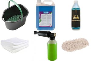 1. Bruk 3 til 4 korker av produktet sammen med rent og kaldt vann i en Grit Guard Vaskebøtte sammen med en Ull Vaskehanske eller Poleringskongen mikrofiber vaskehanske