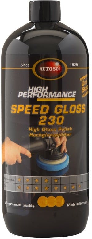 Autosol - HP Speed Gloss 230 - 1L er en høyglans lakkrens med grov slipegrad for fjerning av middels dype riper og kjøregater.