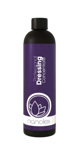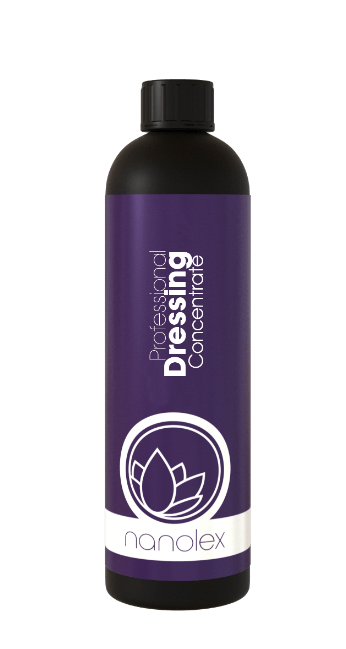 Nanolex Professional Dressing Concentrate er vannbasert og kan fortynnes etter eget ønske slik at egnet glans kan oppnås.