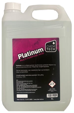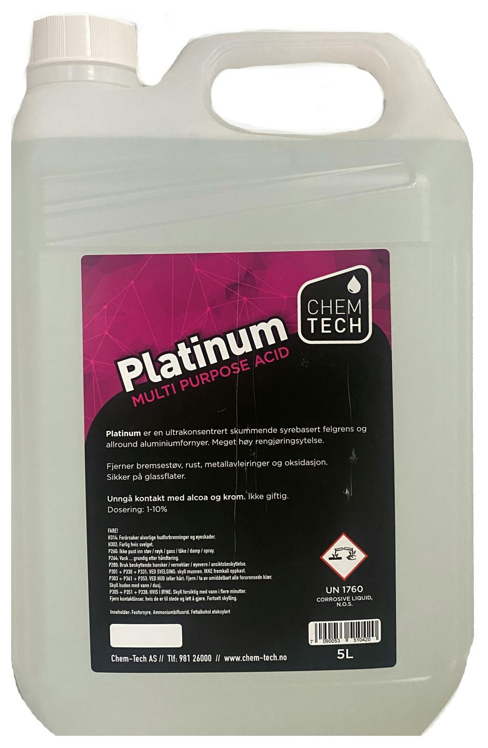 Chem-Tech - Platinum - Felgsyre og Metallpartikkelfjerner er en ultrakonsentrert skummende syrebasert felgrens, metallpartikkelfjerner og allround aluminiumsfornyer med meget høy rengjøringsytelse.