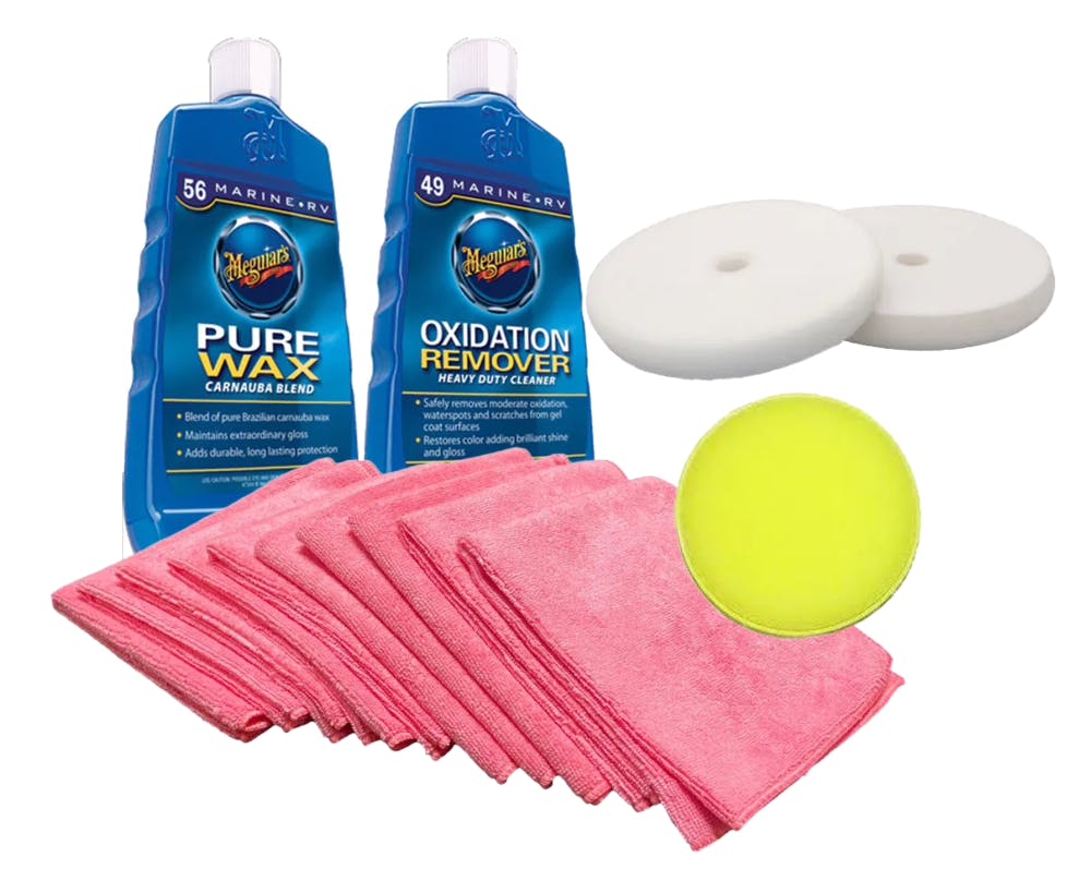 Meguiars - To Stegs Båtpoleringspakke er alt du trenger for å polere båten, poleringsmiddel, wax, filler, pad og påføringspad slik at du har alt du trenger.