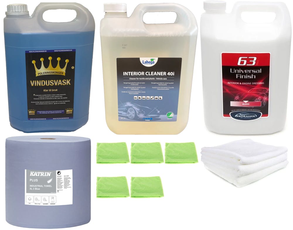 Interiørpakke - Proff inneholder alt du trenger til innvendig vask av bil.