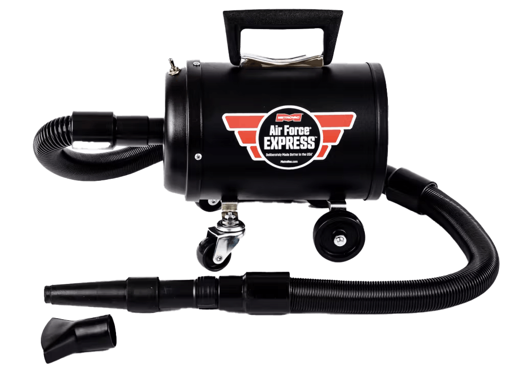 Metrovac - Air Force Express gjør at du tørker bilen med varm kraftig luft slik at du får blåst ut vann av speilhus og alle andre vasnkelige oppråder uten noe mulighet til å få riper.