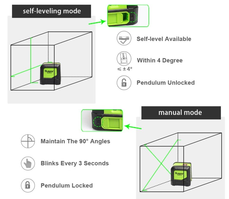 Huepar - Selvregulerende laser justerer seg inn på mindre enn 3 sekunder.