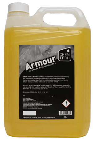 Chem - Tech - Armour - 5L er en høykonsentrert hurtigcoating / avrenningsmiddel som kan kan benyttes i både manuelt og med spraykanner / automatiske vaskeanlegg.