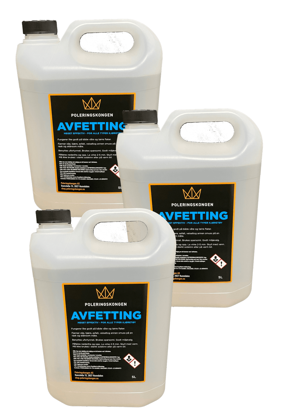 Poleringskongen Avfetting er ett kraftig petrokjemisk avfettingnsmiddel til fjerning av asfalt, olje og salt fra bilen.