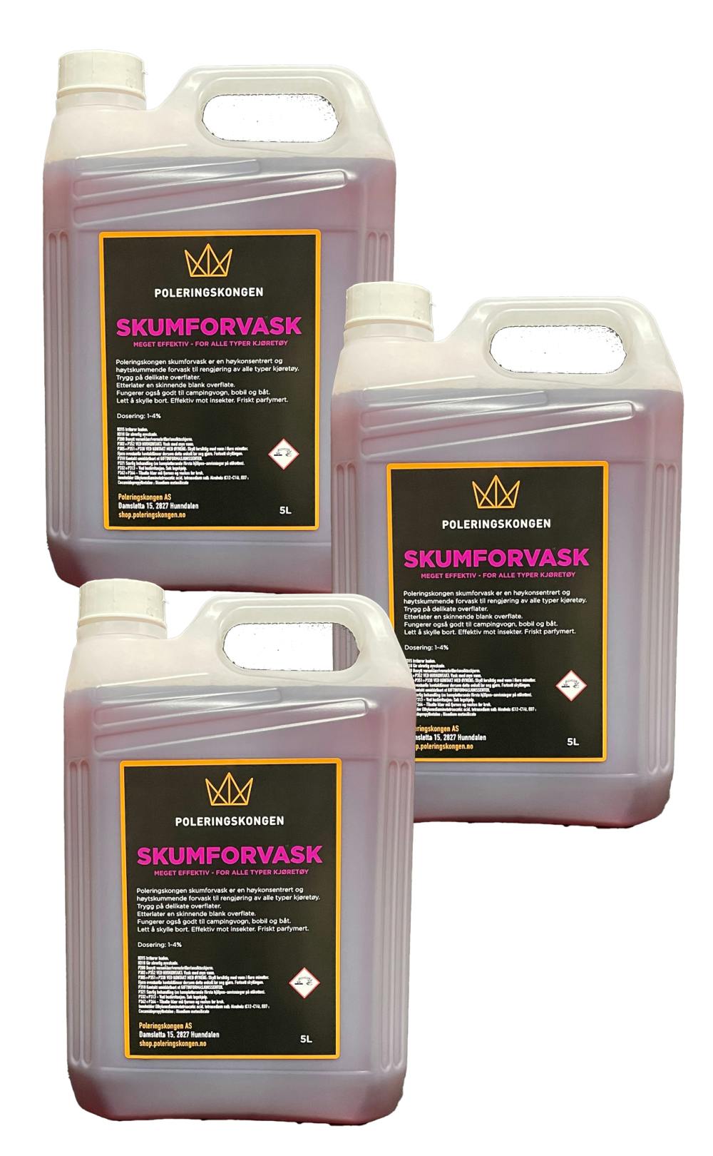 Poleringskongen - Skumforvask - 5 L er en høykonsentrert og høytskummende forvask til rengjøring av alle typer kjøretøy.