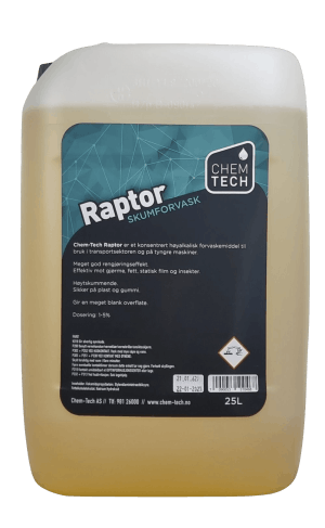 Chem-Tech Raptor - Skumforvask - Superkonsentrat - 25 liter brukes fra 1-5 % og er ekstremt effektiv forvaskemiddel til bruk i transportsektoren og på tyngre kjøretøy.